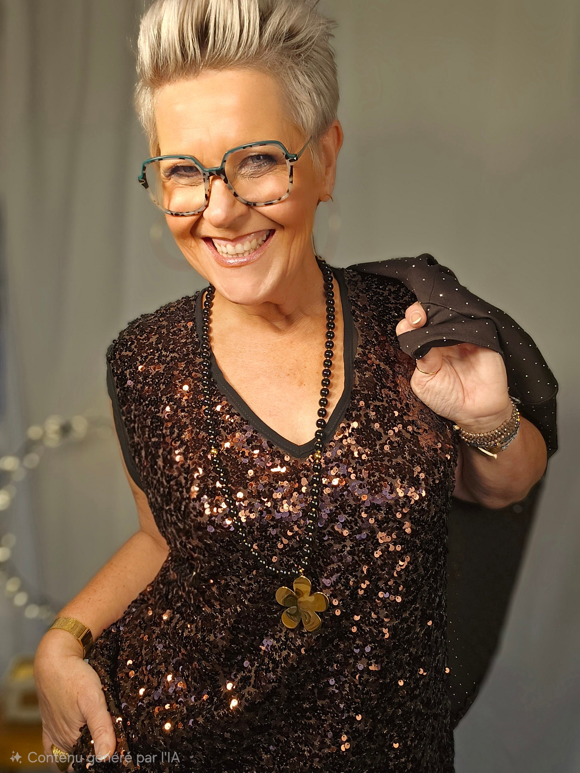 Top en sequins marron.